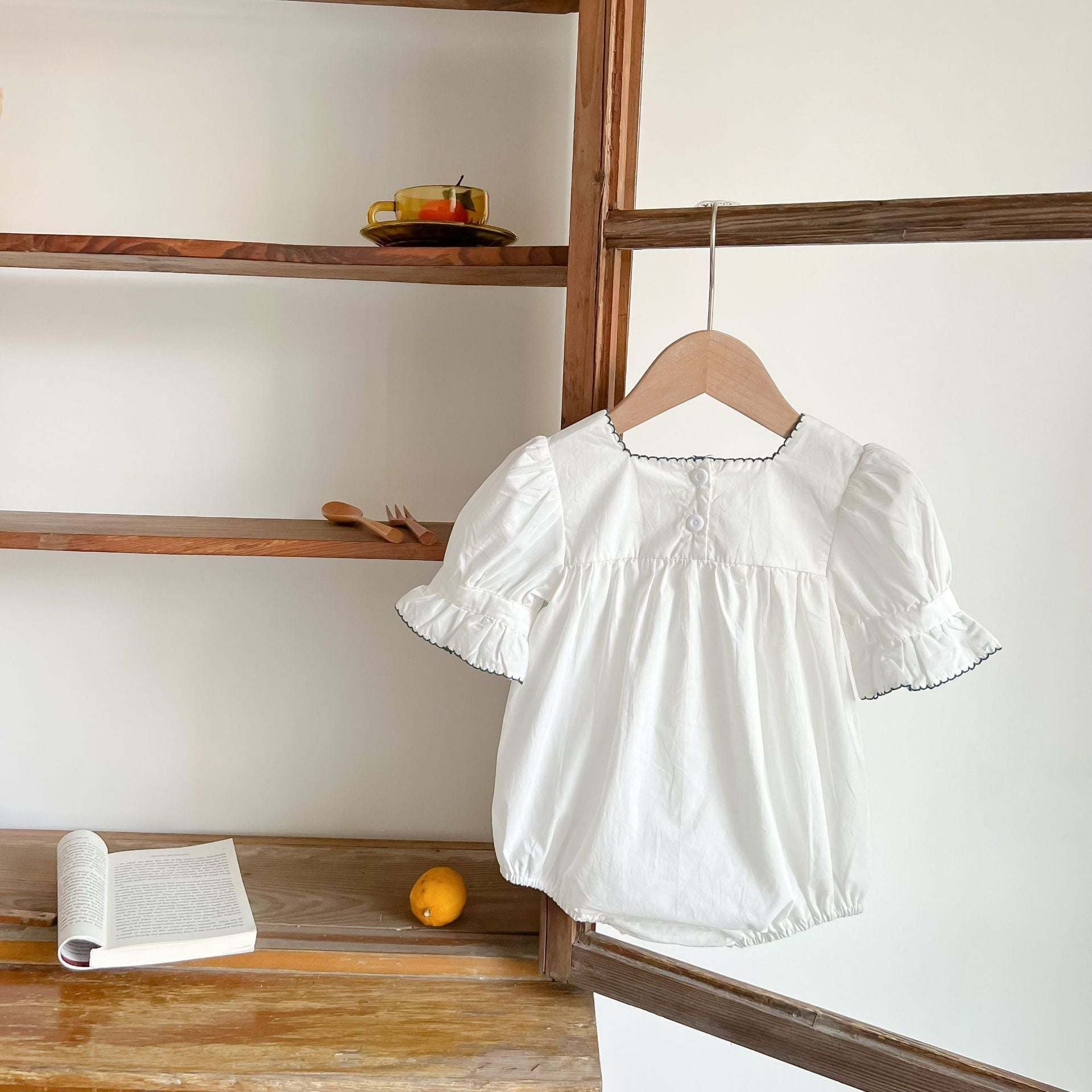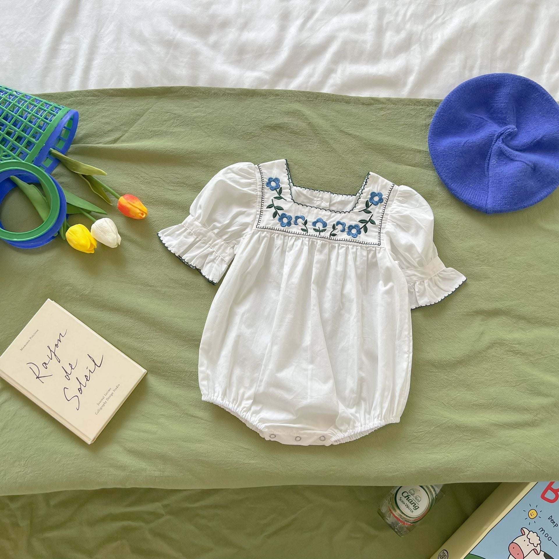 Home > Baby Girl Floral Square Collar Pop Short-Sleeved Onesies