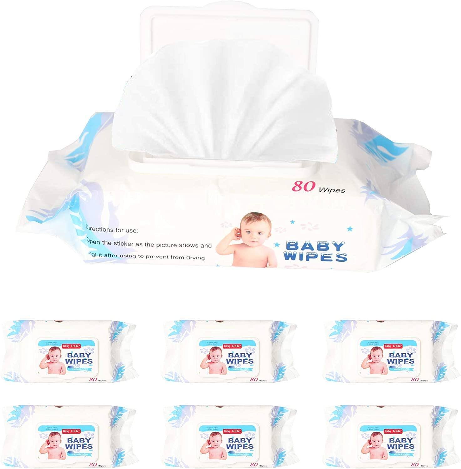 Bosonshop Best Baby Wipes Water Wipes Soft Cleaning Wipes Natural Wet Wipes, 6 Packs, 480 Wipes