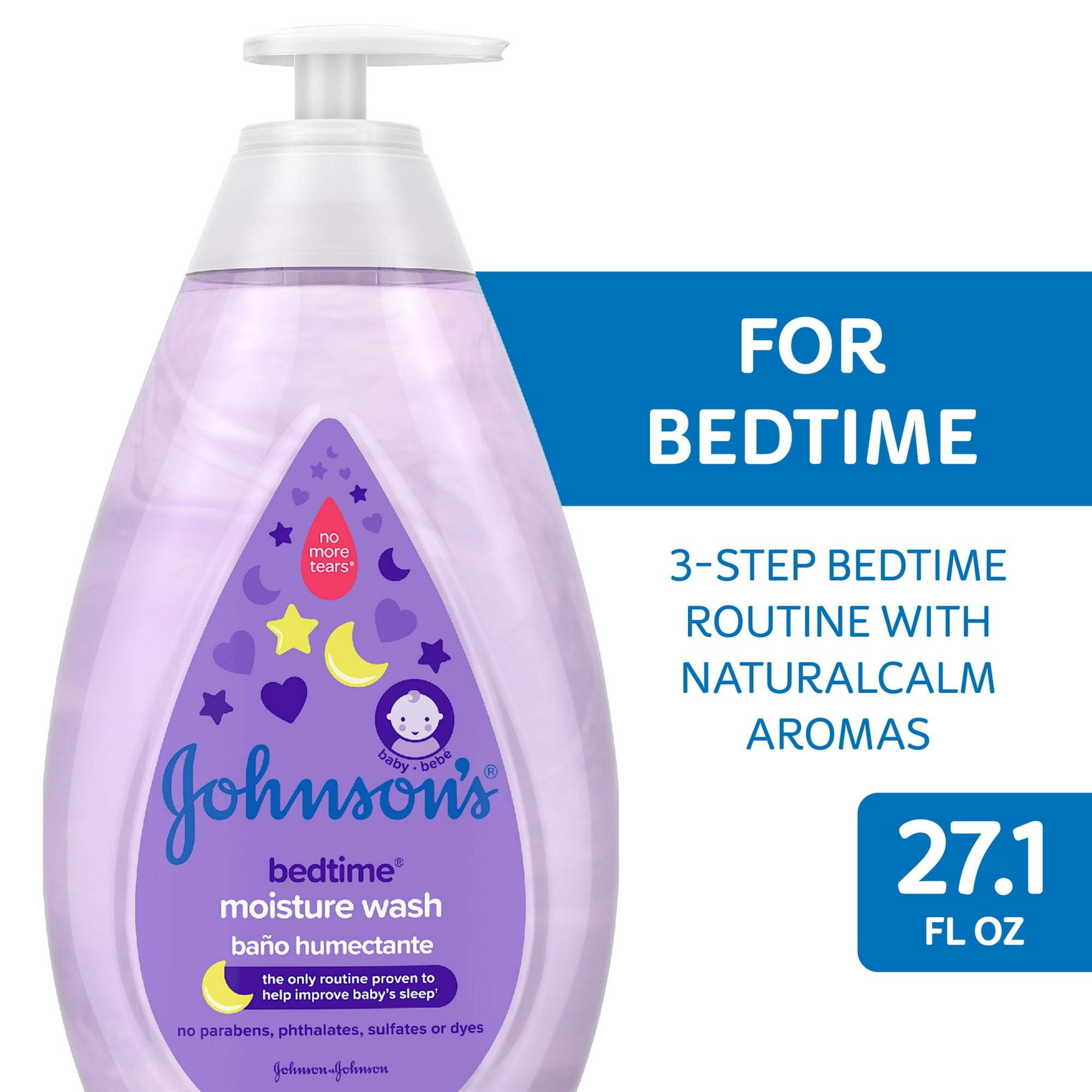 Gently cleanse, soothe, and help your baby relax with Johnson's Bedtime Moisture Baby Wash. Designed with input from parents like you, this baby bath wash creates a gentle, creamy lather and is specially made for babies ready to start sleeping longer. Enhanced with soothing and calming NaturalCalm aromas, the tear-free baby wash cleanses baby's delicate skin, washing away 99.9% of germs and leaving it feeling touchably soft and smooth. The Johnson's No More Tears formula is as gentle on baby's eyes as pure water. Pediatrician and dermatologist-tested, this night time baby wash is free of harsh fragrances, parabens, phthalates, sulfates, and dyes. Johnson's does not test on animals. Use this, calming tear-free baby wash in the evening as part of Johnson's clinically proven 3-step bedtime routine of warm bath, gentle massage, and quiet time to help your baby fall asleep faster and stay asleep longer.
