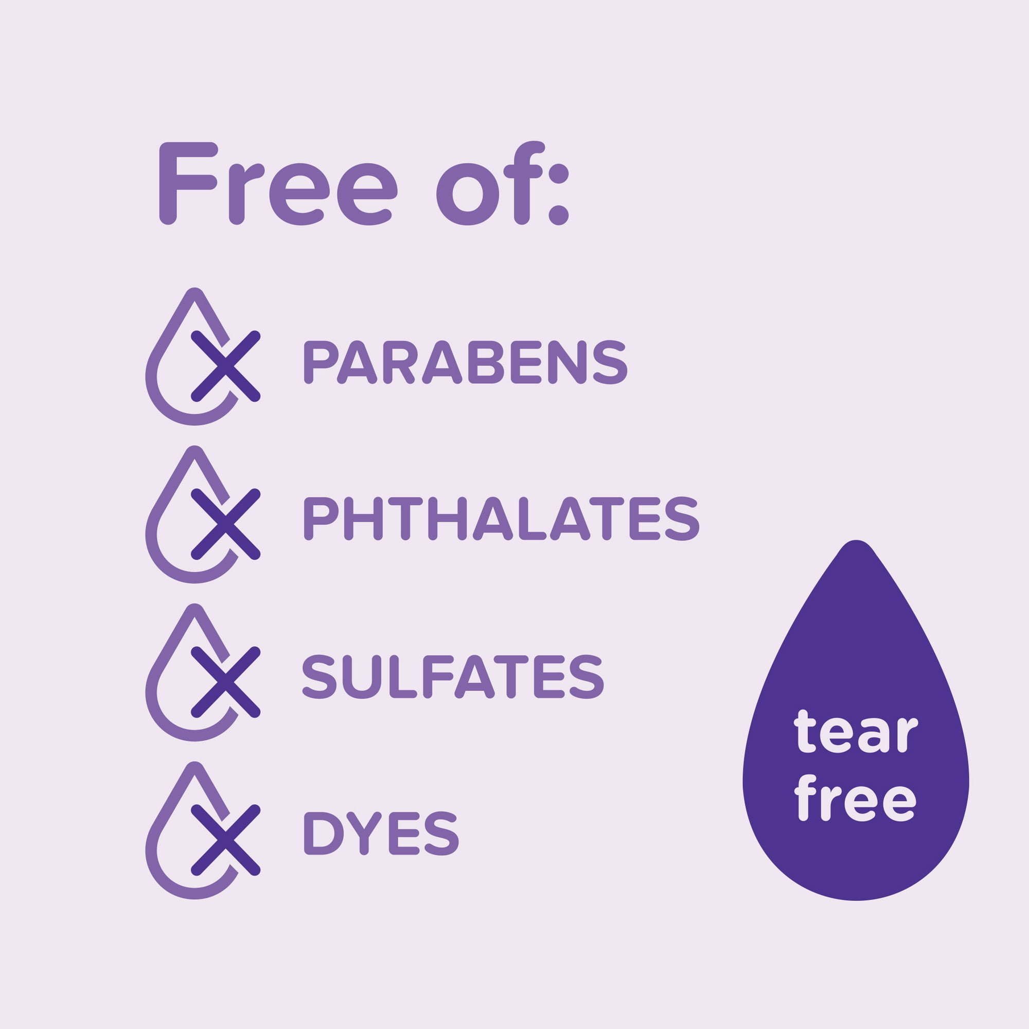Pediatrician-tested, not tested on animals, hypoallergenic, paraben-, dye-, phthalate- & sulfate-free