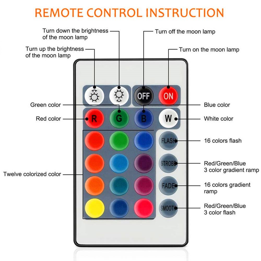 1 x 3D Moon Lamp(built-in battery)(16 colors including remote control)