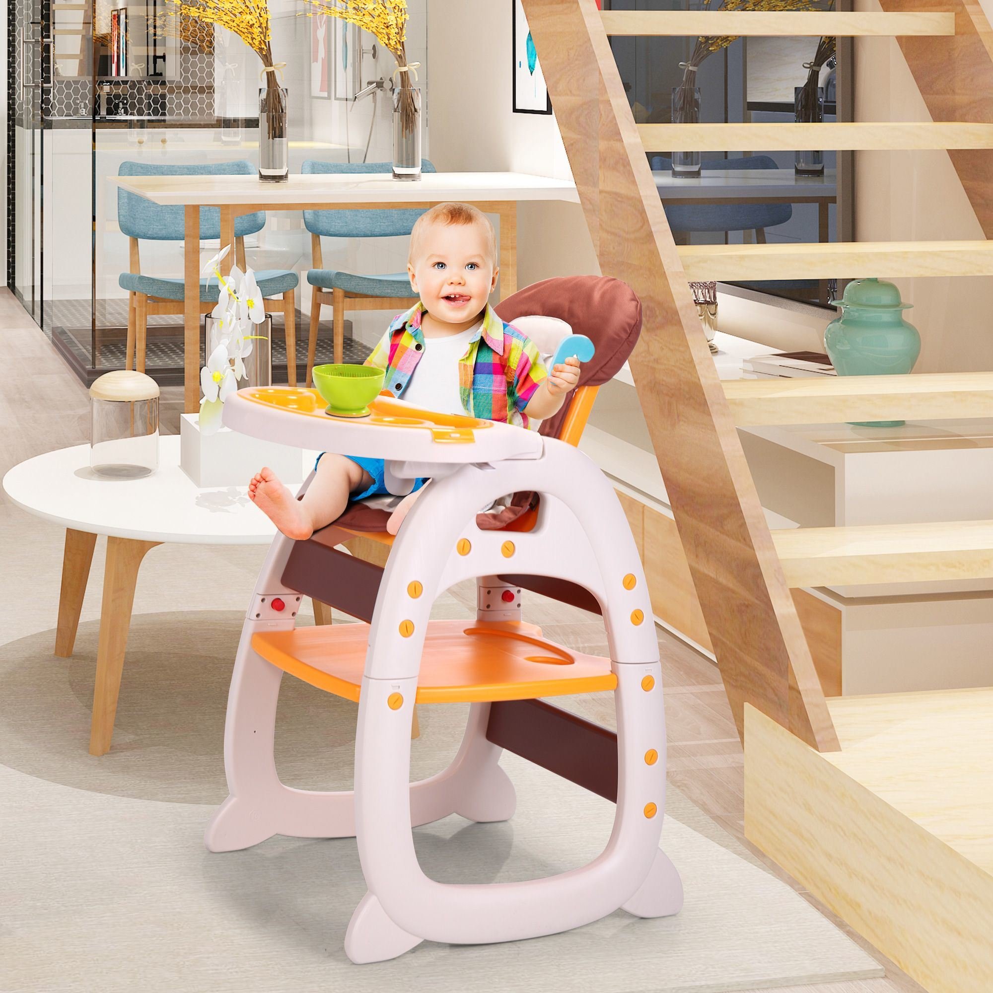 [Multifunctional Design]The backrest and the feeding tray can both be adjusted at 3 positions. The detachable lower part serves as an individual activity table or reading desk.