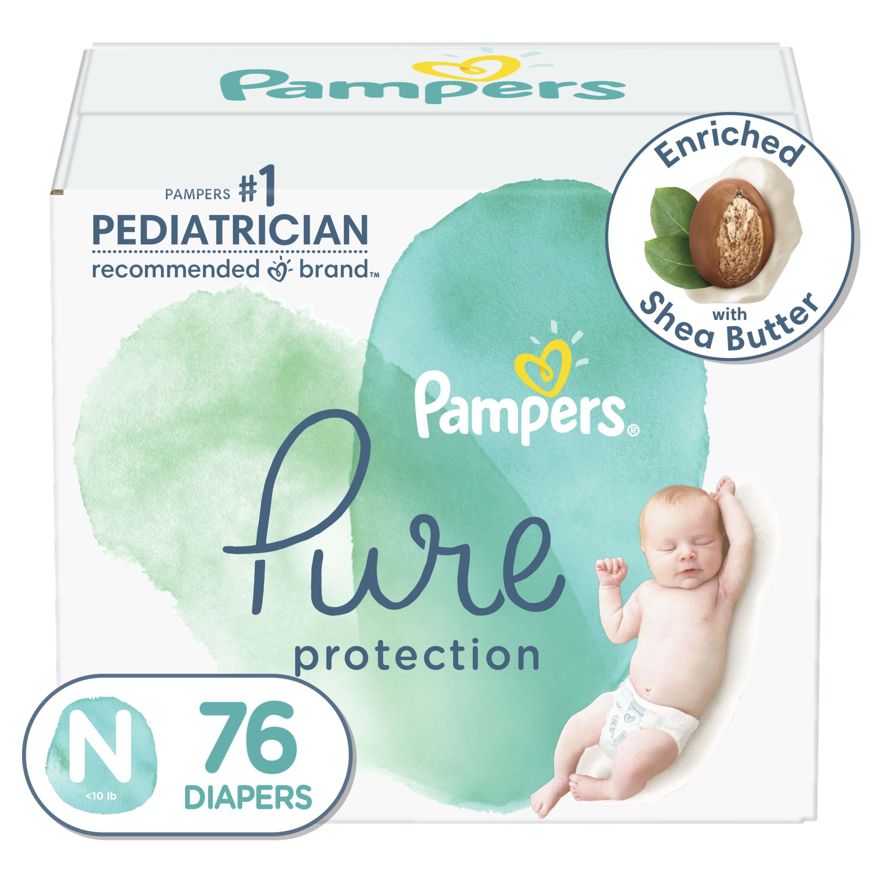 Pampers Pure Protection Natural Diapers Size Newborn, 76 Count