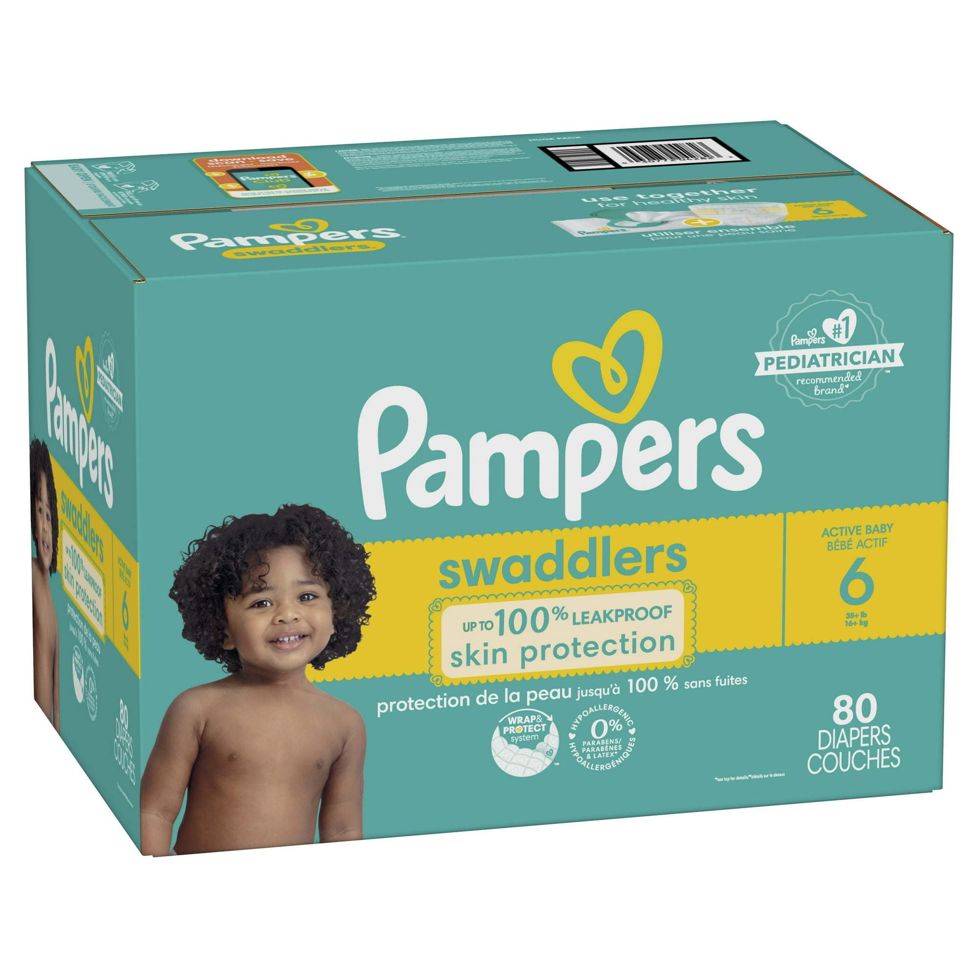 New & improved! Product and packaging may vary. What keeps baby's skin healthy? A diaper that doesn't leave skin wet. That's why new and improved Pampers Swaddlers absorb wetness better and provide up to 100% leakproof skin protection to help keep your baby's skin healthy and protected. New Pampers Swaddlers are designed with a Wrap&Protect Waistband that gently wraps around baby to help protect skin from irritation-and Wrap&Protect leg barriers that protect where leaks happen most.For trusted protection, trust Pampers Swaddlers, the #1 Choice of U.S. Hospitals, Nurses, and Parents.* Pampers LockAway Channels lock wetness away for dry, healthy skin while the BreatheFree Liner wicks away wetness, allowing baby's skin to breathe. Plus, Pampers Swaddlers are Skin Health Alliance Dermatologist Approved, hypoallergenic, and free of parabens and latex, so you can trust them to be safe and gentle on your little one's delicate skin. Pampers Swaddlers are available in sizes N-7 and come in a variety of sweet prints. For trusted protection, trust Pampers, the #1 pediatrician recommended brand.Download the Pampers Club App today and earn Pampers Cash!** Redeem your Pampers Cash for exclusive Pampers coupon savings and rewards! *#1 CHOICE OF U.S. HOSPITALS, NURSES AND PARENTS: Hospitals-based on hospital sales data; Nurses-vs. other hospital brands, among those with a preference; Parents-based on retail sales. 0% PARABENS AND LATEX: Latex-natural rubber. **Only redeemable via Pampers Club. No cash value.